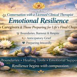 This opening session invites participants to approach death as a sacred transition rather than an ending. Designed for individuals who wish to prepare proactively for their own inevitable death, for those walking beside a loved one on that journey, and for clergy or spiritual companions who counsel others in times of uncertainty, this conversation offers spiritual grounding and clarity. Drawing from Integral Yoga and universal spiritual wisdom, we will reflect on forgiveness, meaning, life review, and practices that bring peace to the heart. We will explore how prayer, mantra, breath, steady presence, and a deeper understanding of “what dies” can support both the dying and those who love them. This session gently prepares the heart — not the paperwork. 🌿 About the Full Series of End-of-Life Preparation Death is a natural part of life — yet most of us feel unprepared to face it, whether for ourselves or for someone we love. The End-of-Life Preparation Series is a thoughtfully designed journey offering practical guidance, emotional resilience, relational clarity, and spiritual reflection. Through expert conversations, compassionate dialogue, and structured preparation, participants are supported in replacing fear with understanding and uncertainty with steadiness. This is not a morbid series. It is a […]